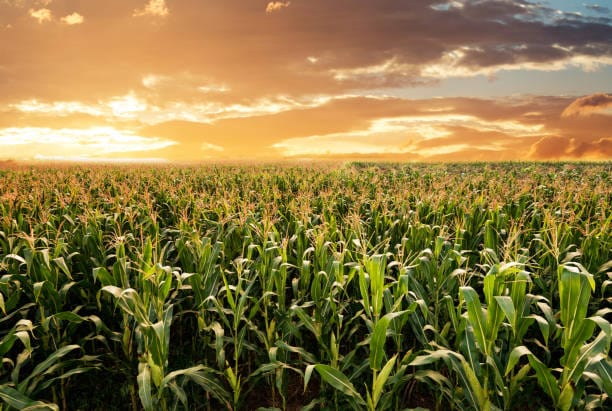 Golden sunrise over lush Kenyan maize fields — where local AI meets smallholder farming